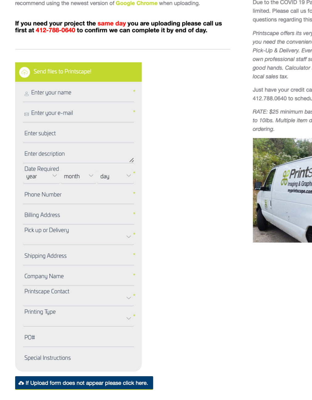 Klients apmeklē jūsu mājas lapu, kurā ir ievietota ielādes forma