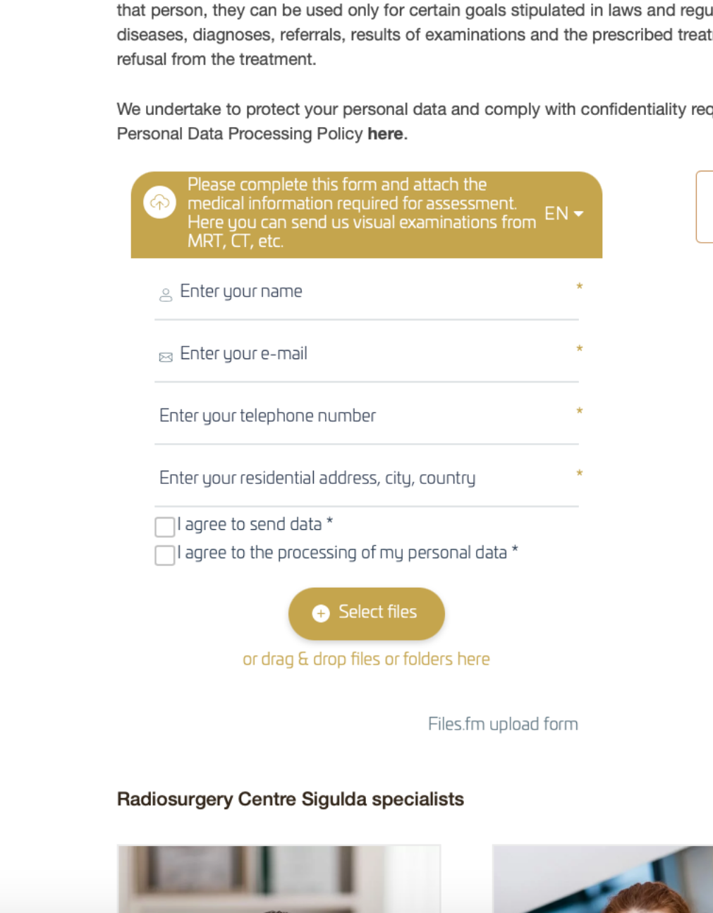 Klients uzmet failus un aizpilda formu. Faili un formas dati tiek saglabāti jūsu kontā.